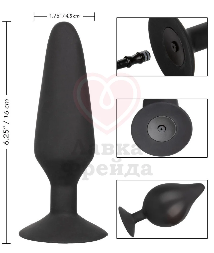 Анальная пробка Silicone Inflatable Plug — это игрушка со специальным шлангом, чтобы увеличивать её в размере. Создана игрушка для тех, кто любит большие девайсы. Длина пробки 16 см, а диаметр 4,5 см в изначальном состоянии. Вы сможете увеличить игрушку для максимальных ощущений, накачивая воздух при помощи шланга и специальной груши.