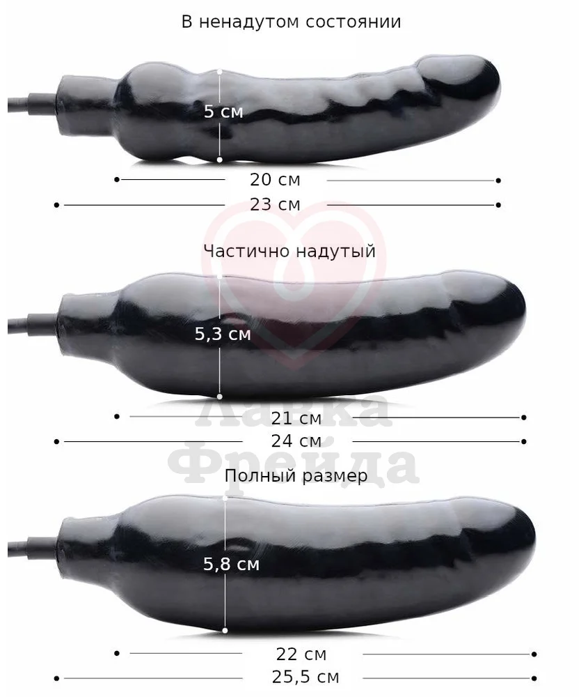Эластичность материала позволяет стволу расширяться под действием воздуха, который можно накачивать при помощи специальной ручной помпы. В ненадутом состоянии фаллоимитатор имеет длину проникновения 20 см, а диаметр в самой широкой части 5 см, постепенно увеличиваясь в размерах, его длина может стать 22 см, а диаметр 5,8 см