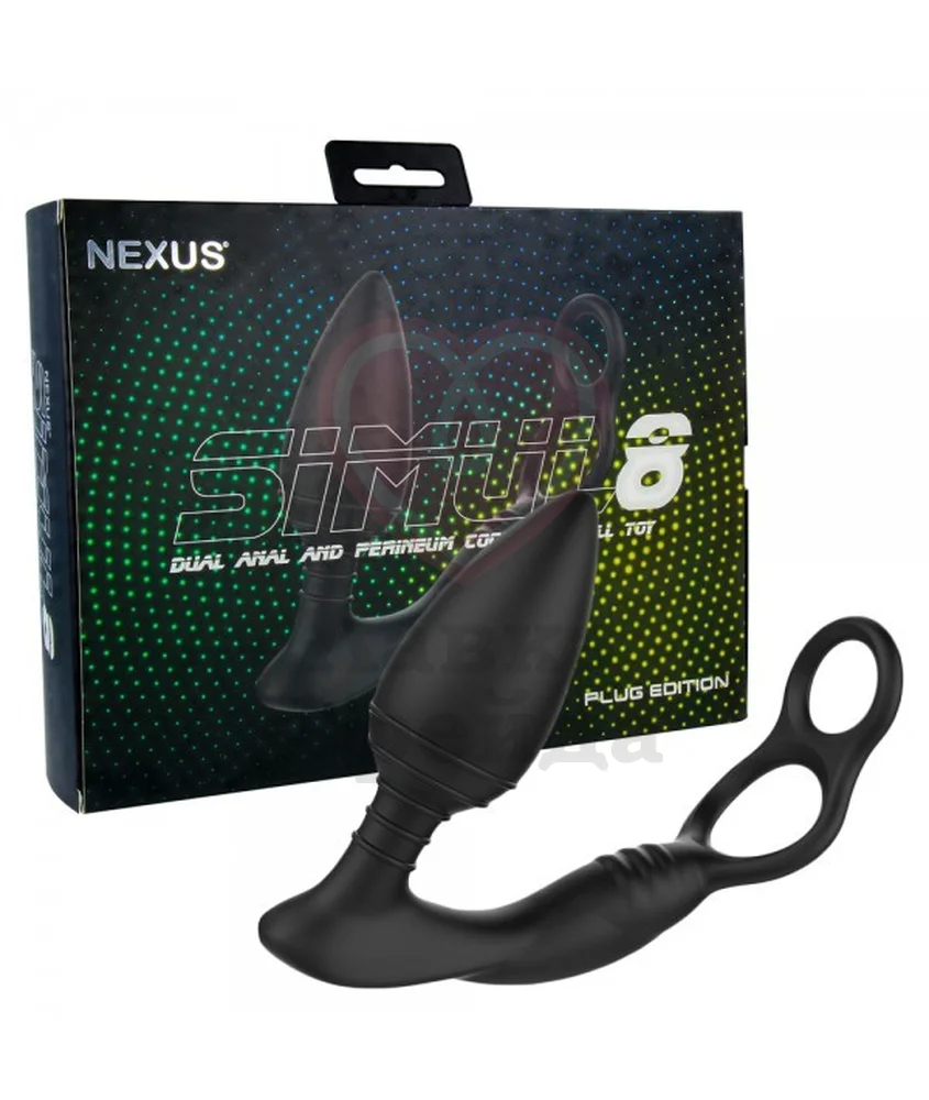 Nexus Simul8 совмещает в себе анальную пробку с вибрацией и двойное эрекционное кольцо для члена и мошонки.