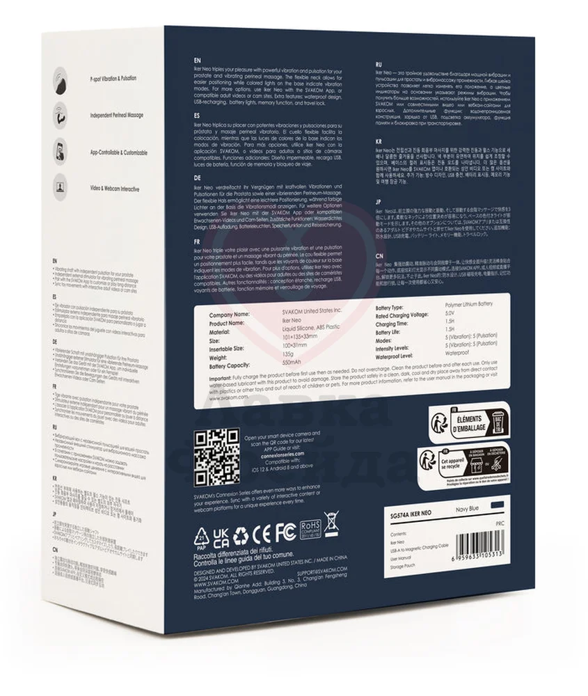 Массажёр Iker Neo одновременно воздействует на мужскую простату (головкой с виброэлементом) и промежность (внешним стимулятором). Устройство имеет 5 вибро-режимов и 5 режимов пульсации, встроенную защиту от случайного включения и функцию памяти - в следующий раз девайс начнёт работу с последнего выбранного ритма. Переключаться между режимами вибрации и пульсации можно кнопками, расположенными на корпусе игрушки, или через приложение для смартфона Svakom.