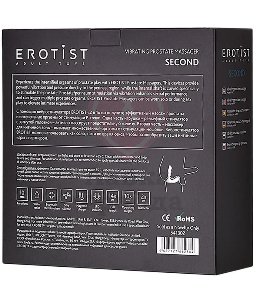 Erotist Second - игрушка, разработанная для точечной стимуляции предстательной железы. Модель создана с учётом всех анатомических особенностей мужского тела. Плавный изгиб конструкции обеспечивает комфортное введение и удержание стимулятора в оптимальном положении. Поверхность гладкая, но не скользкая, что предотвращает случайное смещение устройства во время игры. Для комфортного введения нанесите на головку игрушки немного анального лубриканта на водной основе.