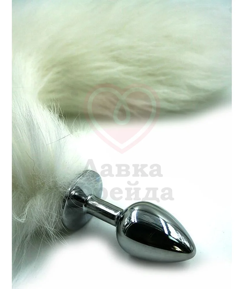 Анальная пробка из алюминия с хвостом из натурального белого меха