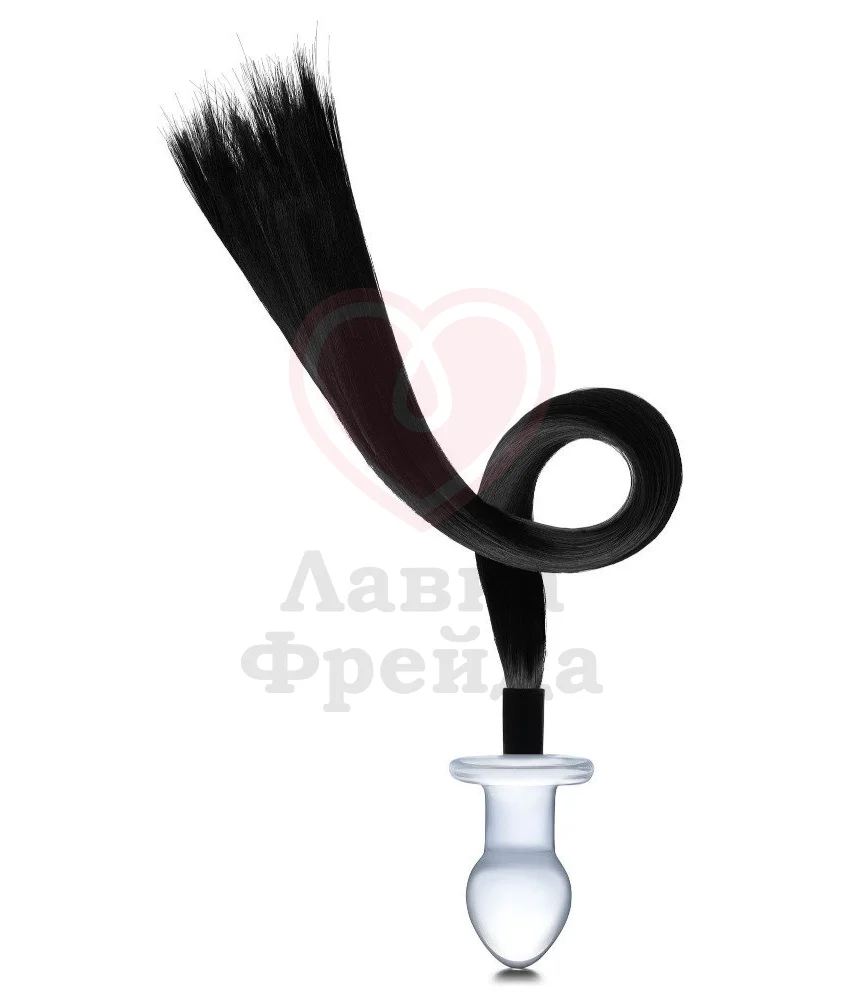 Прозрачная анальная пробка Glas Horse Tail дополнена длинным черным хвостом. Общая длина вместе с хвостом 55 см. Сама пробка имеет длину 7,5 см, длина проникновения составляет 6,5 см, а максимальный диаметр 3,8 см. Удобная гладкая игрушка обладает классической формой с зауженным кончиком для плавного проникновения и широким основание для безопасности.