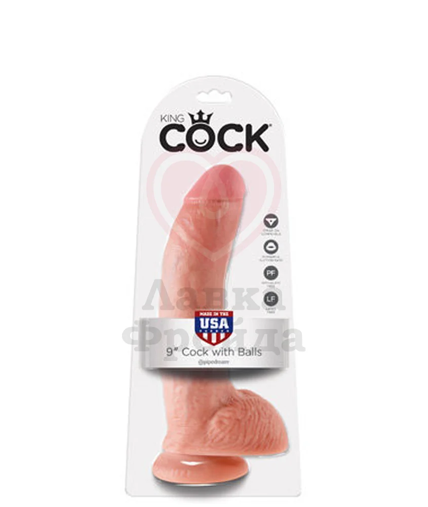 Фаллоимитатор King Cock with Balls выполнен в реалистичной манере с выпуклой головкой, рельефной мошонкой и набухшими венами. Общая длина 23 см, длина проникновения составит 17 см, а максимальный диаметр 5,3 см. Игрушка изготовлена из упругого материала ПВХ, без фталатов и латекса, с которым вы сможете использовать лубрикант на любой основе. На основании фаллоимитатора расположена присоска, которая позволит надежно закрепить его к любой плоской поверхности.