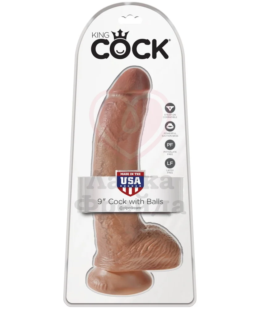 Фаллоимитатор King Cock with Balls выполнен в реалистичной манере с выпуклой головкой, рельефной мошонкой и набухшими венами. Общая длина 23 см, длина проникновения составит 17 см, а максимальный диаметр 5,3 см. Игрушка изготовлена из упругого материала ПВХ, без фталатов и латекса, с которым вы сможете использовать лубрикант на любой основе. На основании фаллоимитатора расположена присоска, которая позволит надежно закрепить его к любой плоской поверхности.