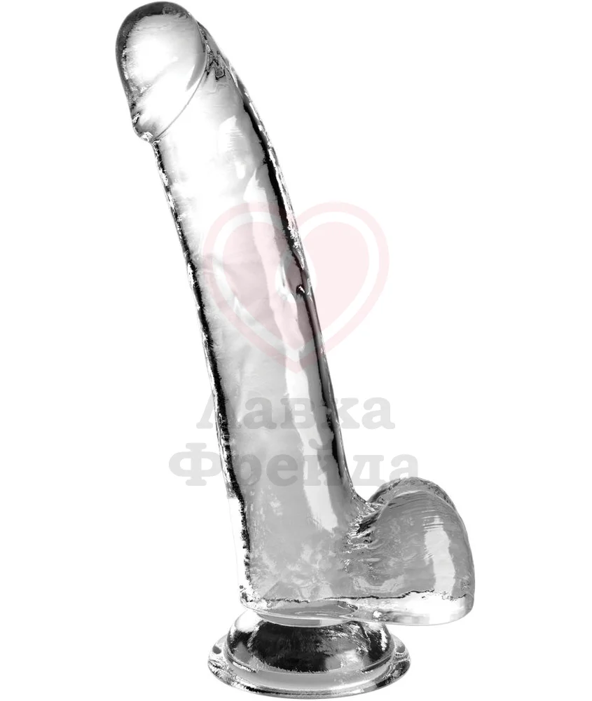 King Cock Clear – это полностью прозрачный реалистичный фаллоимитатор на присоске, впечатляющий на вид и удобный для использования. Эта модель имеет крупные размеры: общие 25 см, длина проникновения 20 см и диаметр в 4,5 см — специально для любителей больших фаллоимитаторов. Ствол имеет слегка объемные венки, выраженную гладкую головку, а снизу — мошонку для дополнительной реалистичности и стимуляции.