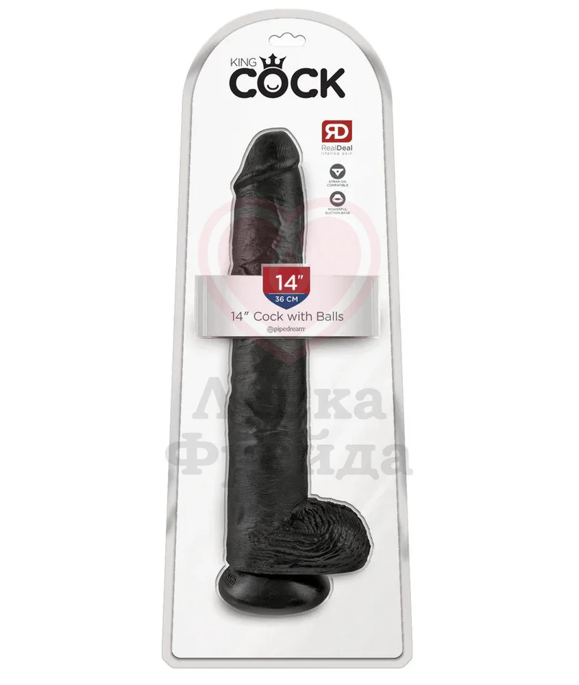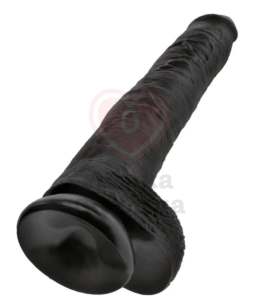 Большой фаллоимитатор King Cock with Balls выполнен в реалистичной манере с выпуклой головкой, рельефной мошонкой и набухшими венами. Изготовлен из упругого материала ПВХ, без фталатов и латекса, с которым вы сможете использовать лубрикант на любой основе. Внушительные размеры понравятся тем, кто любит габаритные игрушки: общая длина 37,5 см, длина проникновения 30 см, а максимальный диаметр 6 см. На основании фаллоимитатора расположена присоска, которая позволит надежно закрепить его к любой плоской поверхности.