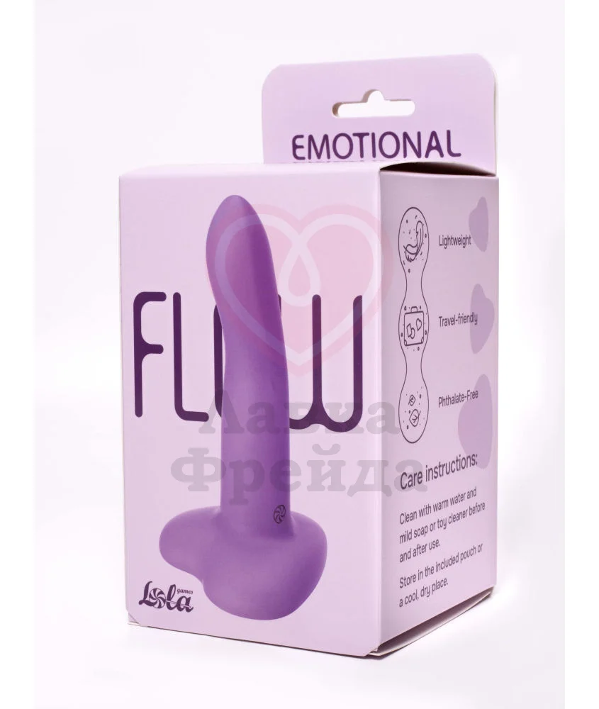 Lola Games Flow Emotional Purple ― минималистичный фаллоимитатор, сделанный из нежного и упругого медицинского силикона фиолетового цвета. За счёт лёгкого изгиба головка будет точечно стимулировать зону G. Мощная присоска в форме сердца не только поможет зафиксировать фаллос практически на любой плоской поверхности, освобождая руки, но и подходит к большинству систем страпона.