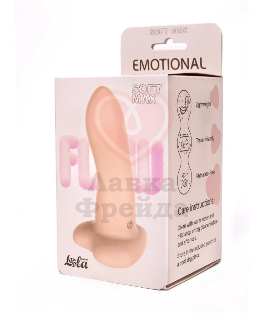 Lola Games Flow Emotional Soft Max Flesh ― нереалистичный фаллос увеличенного размера с лёгким изгибом головки, предназначенным для точечного воздействия на зону G. Длина изделия ― 13 см, максимальный диаметр ― 4 см.