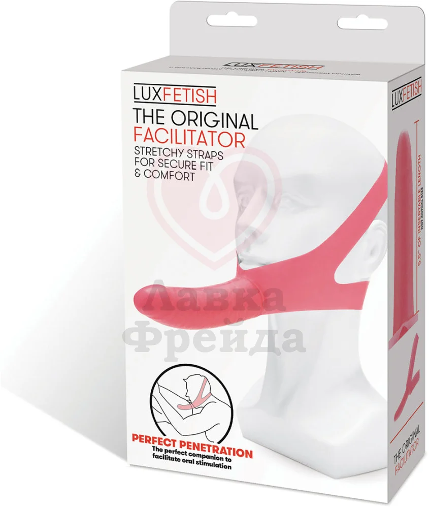 Оригинальный фаллоимитатор The Original Facilitator идеально подходит для орального секса и одновременного проникновения в вагину или анальное отверстие. Аксессуар имеет два удобных ремня, которые крепятся на голове - на шее и ближе к затылку. Эластичный материал хорошо тянется, поэтому ремешки будут впору как на женскую, так и мужскую голову. Изделие совместимо с лубрикантами на водной, силиконовой и гибридной основе. Очищать теплой водой с добавлением мыла, или обрабатывать антибактериальным спреем для игрушек.