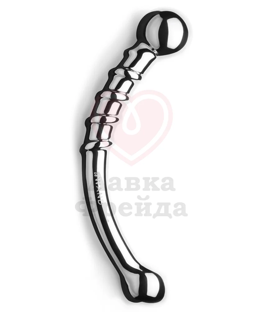 Стальной стимулятор Le Wand Bow имеет плавный изгиб, рельеф в виде спирали и два круглых кончика для чувственного воздействия на интимные зоны. Подойдет такая игрушка для разных видов практик, использовать его можно для внешних игр с температурой, а также вагинально. При анальном применении будьте аккуратными, соблюдая необходимую безопасность: добавляйте достаточное количество лубриканта, не погружайте стимулятор полностью, оставляя большой кончик снаружи в качестве ручки-стопера. Общая длина фаллоимитатора 20 см, максимальны диаметр маленького кончика — 2,7 см, а диаметр большого шарика — 3,4 см.