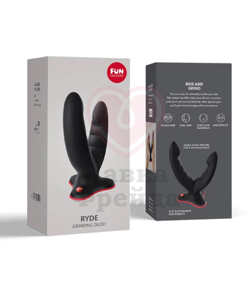 Фаллоимитатор Fun Factory Ryde Grinding Double Dildo - гибкая, податливая игрушка с выступами, идеально подходящая для одновременной вагинальной и анальной стимуляции. Подходит для соло игры как для женщин, так и для мужчин, или парного секса. Присоска на основании надежно крепится практически к любой чистой плоской поверхности, освобождая руки и давая простор воображению. Также присоска хорошо сочетается с трусиками и поясами для страпона с креплением колечком.