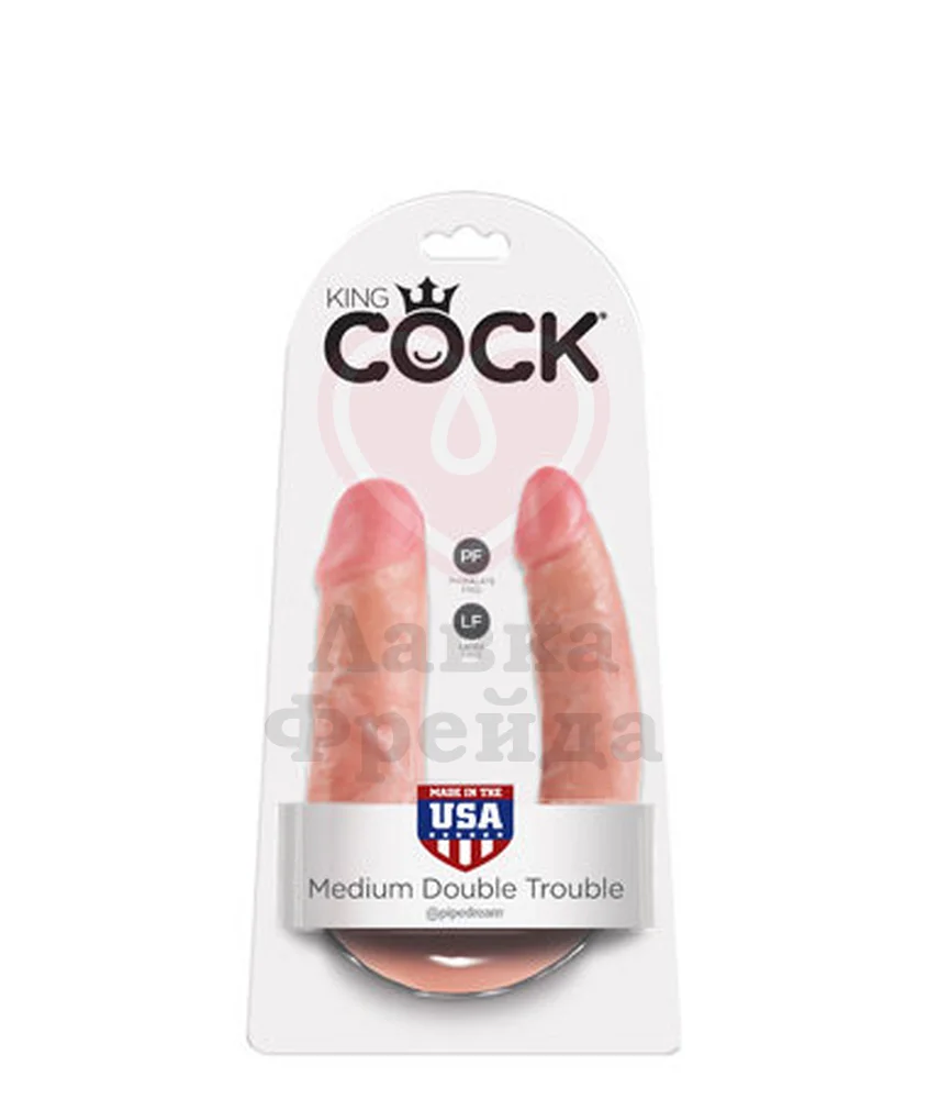 Двухсторонний фаллоимитатор King Cock U-Shaped Medium Double Trouble выполнен очень и очень реалистично: тугой ствол, выпуклая головка и набухшие от напряжения венки. Двойной стимулятор вы можете использовать для исполнения любых своих фантазий.