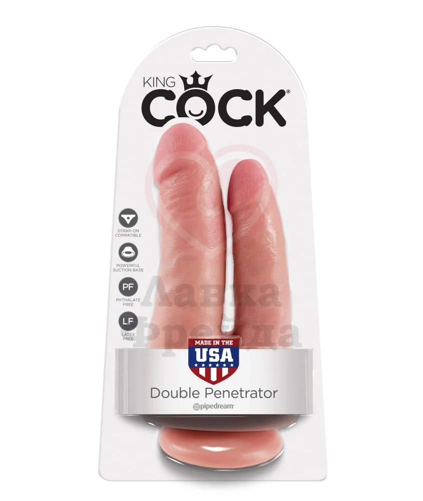 Фаллоимитатор King Cock Double Penetrator поможет вам исполнить фантазию о страстном двойном проникновении. Выполнен в реалистичной манере с выпуклой головкой, рельефной мошонкой и набухшими венами. Изготовлен из упругого материала ПВХ, без фталатов и латекса, с которым вы сможете использовать лубрикант на любой основе.