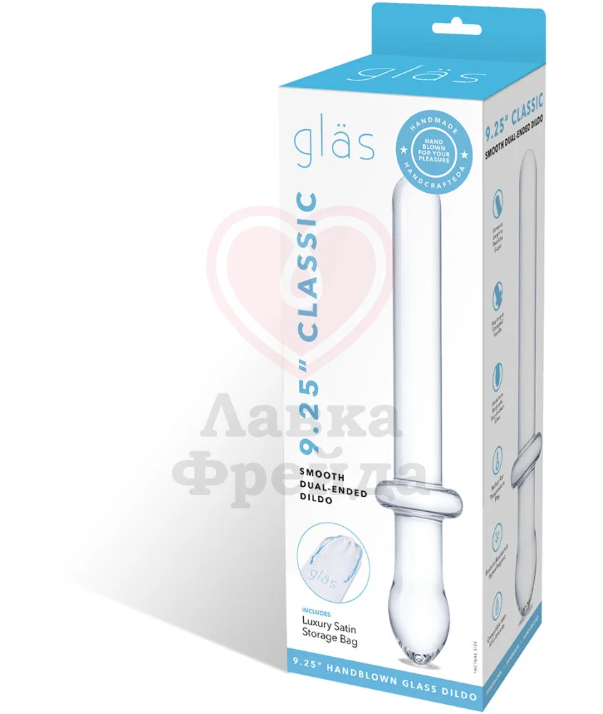 Двусторонний фаллоимитатор Glas Classic Handblown имеет ровный вагинальный ствол с закругленным кончиком, а также классическую анальную пробку, дополненную плоским ограничителем, за счет чего игрушка не проскользнет внутрь. Изделие выполнено из прочного, качественного стекла - материал, который отлично сочетается с любыми лубрикантами, а также легко моется как антибактериальным спреем для игрушек, так и обычной водой с мылом. Аксессуар можно нагревать под струей горячей воды, или наоборот - остужать в холодильнике, добиваясь более ярких ощущений.