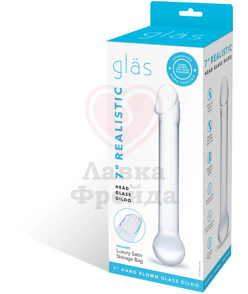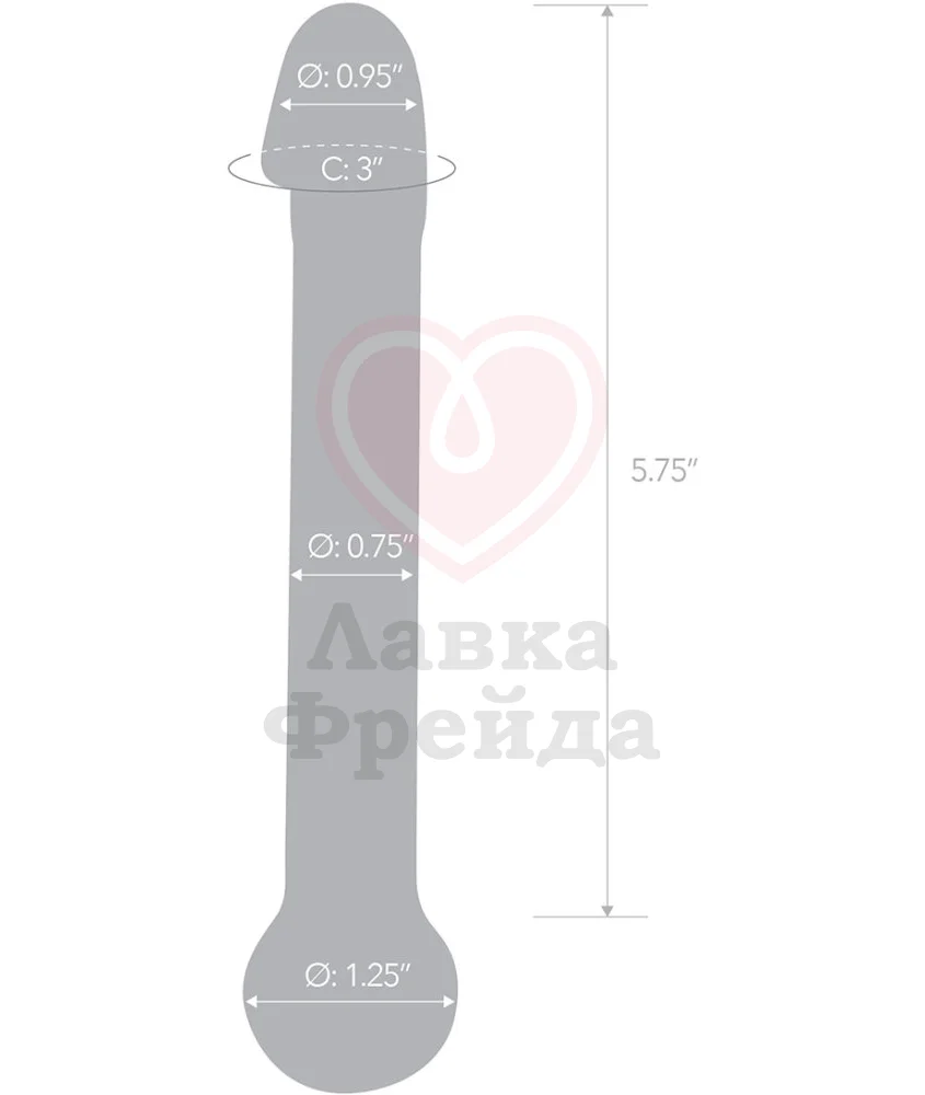 Тонкий стеклянный дилдо с реалистичной головкой на одном конце и круглым шаром на второй стороне. Общая длина стимулятора из закаленного стекла ручной работы 16 см, диаметр от 2 до 3 см.