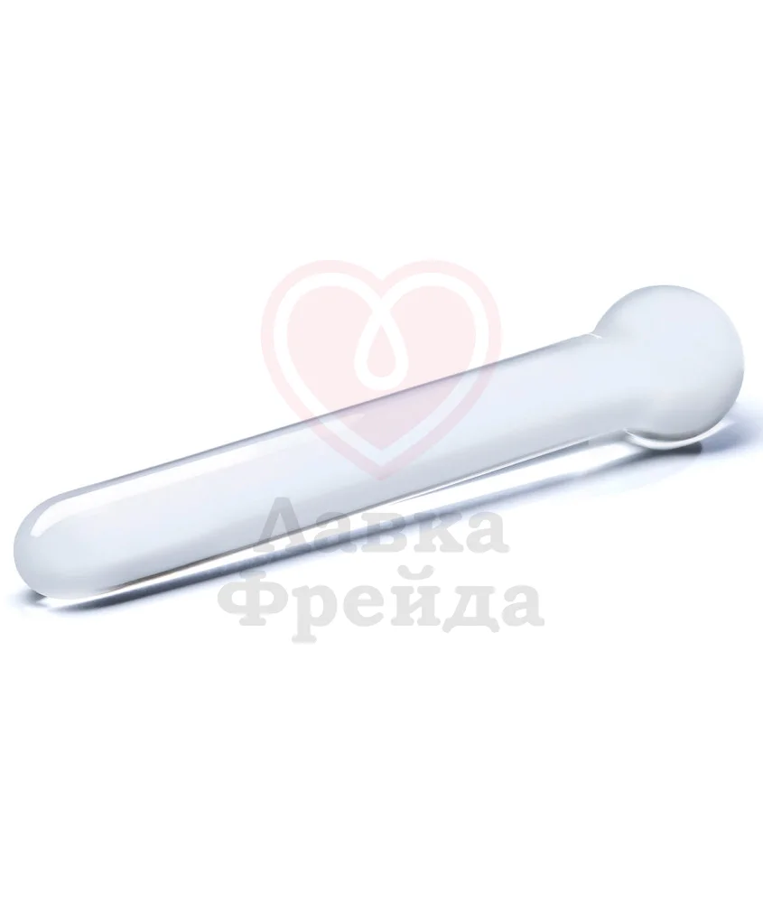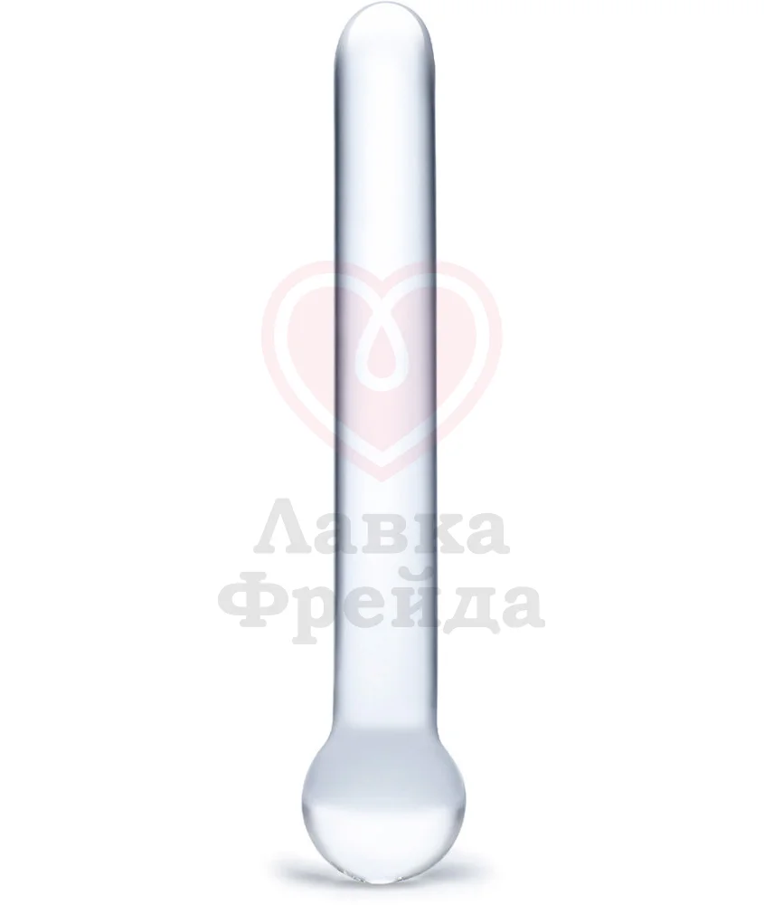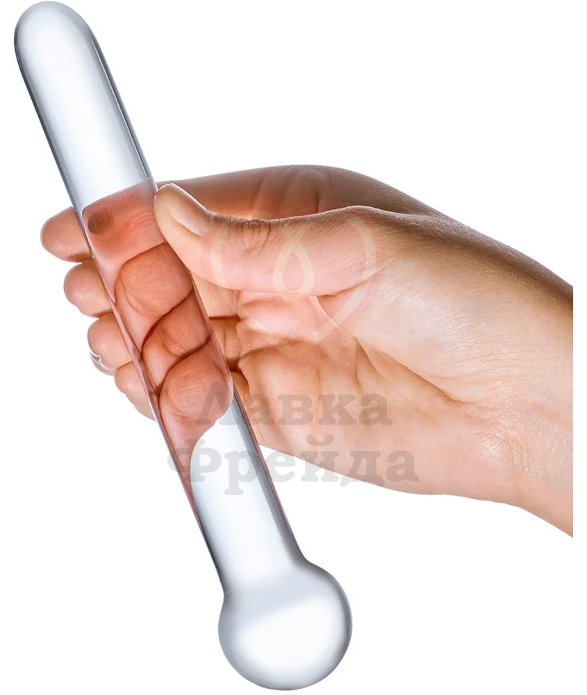 Прозрачный стеклянный жезл прямой формы. Выполнен вручную из закаленного стекла. На одной стороне у жезла стеклянный шар. Общая длина 16,5 см, диаметр от 2 до 3 см.