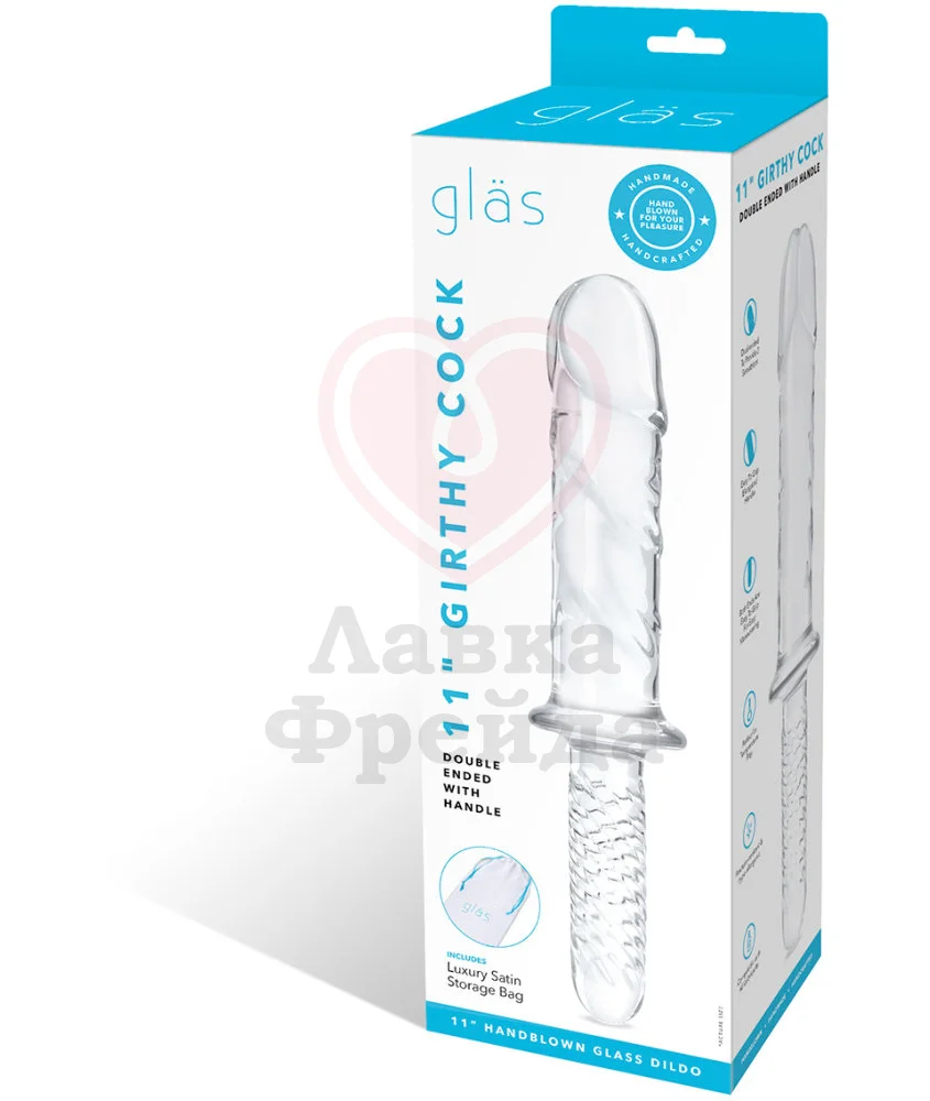 Одна половина фаллоимитатора Girthy Cock Double Ended With Handle имеет реалистичный дизайн - крупную очерченную головку и фактурное тело, покрытое сеткой набухших вен. Вторая часть меньшего диаметра, покрыта текстурным узором из сложных прожилок, которые будут дополнительно стимулировать внутренние эрогенные зоны.