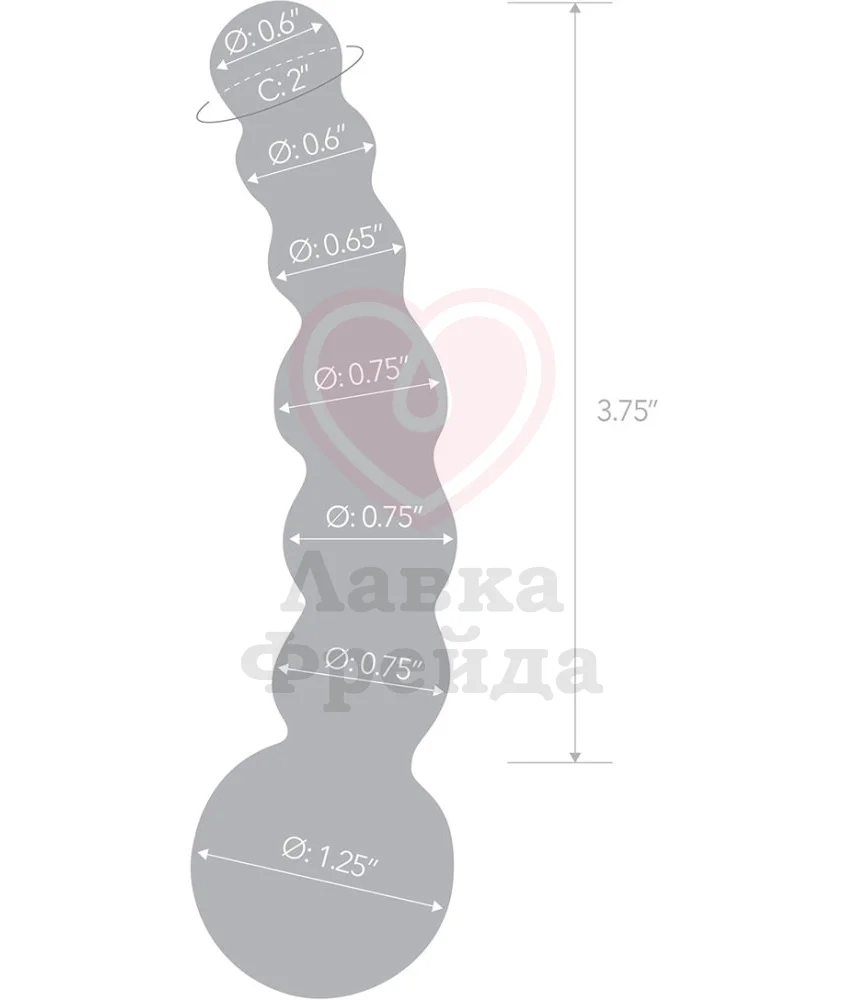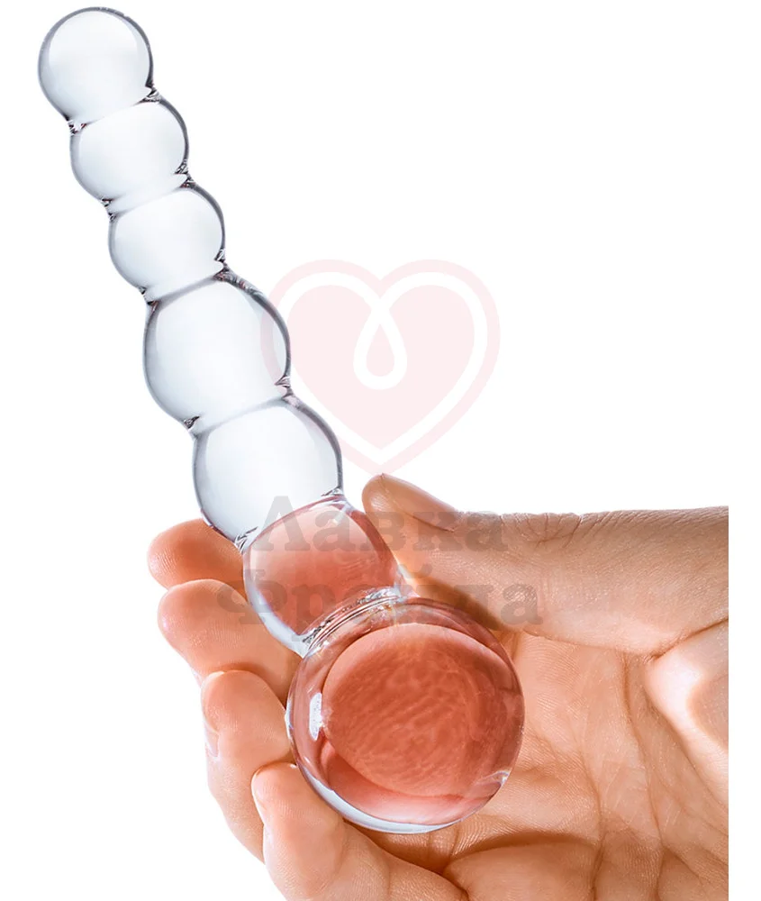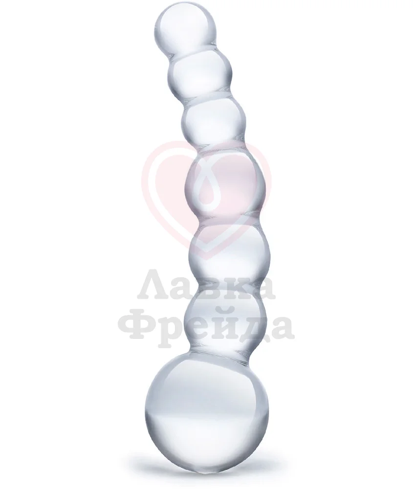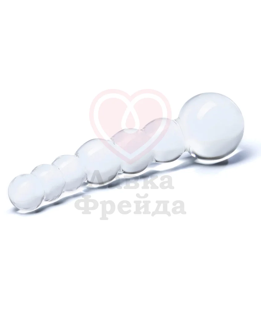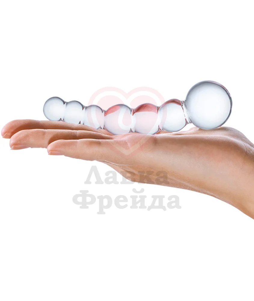 Полностью прозрачный этот стимулятор поражает своей формой: на такое стекло можно просто смотреть и любоваться. Но на самом деле, лучше его использовать для полезного дела — получения новых впечатлений. К этому девайсу, состоящему будто бы из шариков, так и хочется прикасаться. Его изогнутая форма и небольшой размер обеспечит мягкость введения, поэтому — дерзайте.