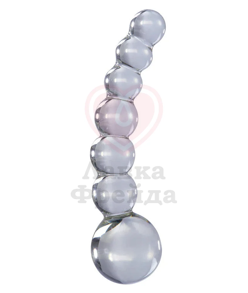 Небольшой стимулятор Icicles №66 — это рельефная игрушка из объемных стеклянных шариков, которые постепенно увеличиваются в диаметре. Общая длина составляет 12 см, а максимальный диаметр 3 см. Приятный загнутый кончик и дополнительный ощутимый рельеф — идеальный вариант для чувственной стимуляции.