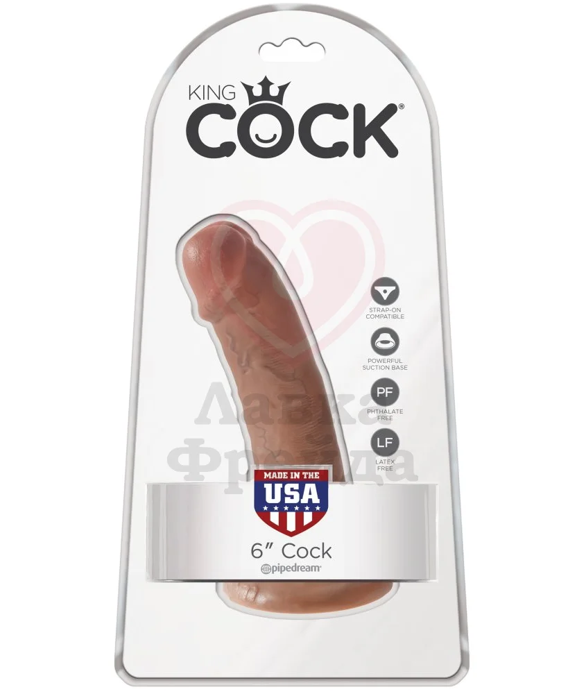 Фаллоимитатор King Cock — это реалистичная игрушка с анатомическим дизайном: выраженная головка, упругий слегка изогнутый ствол и рельефные венки для дополнительной стимуляции. Эта модель выпускается в коричневом оттенке. Длина проникновения девайса 15 см, максимальный диаметр 4,2 см. На основании расположена мощная присоска, которая помогает закрепить фаллоимитатор на плоской поверхности, а также использовать с трусиками для страпонов с колечком.