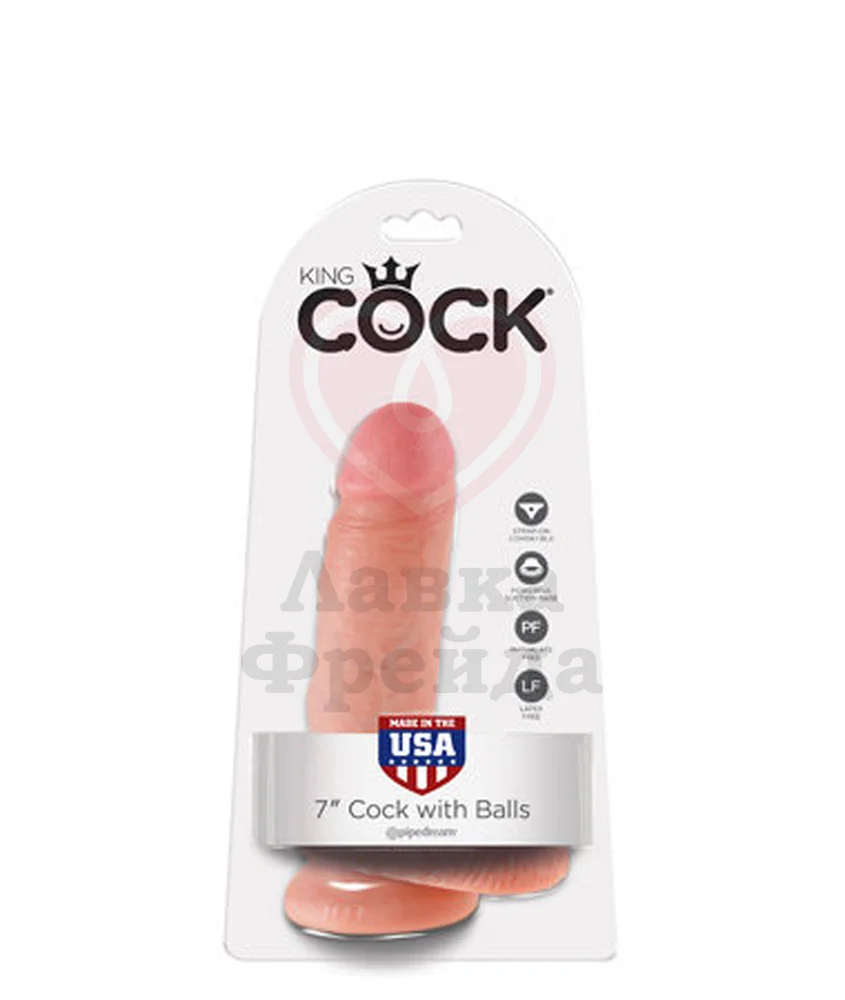 Фаллоимитатор King Cock with Balls выполнен в реалистичной манере с выпуклой головкой, рельефной мошонкой и набухшими венами. Общая длина 19 см, длина проникновения составит 13 см, а максимальный диаметр 4,5 см. Игрушка изготовлена из упругого материала ПВХ, без фталатов и латекса, с которым вы сможете использовать лубрикант на любой основе. На основании фаллоимитатора расположена присоска, которая позволит надежно закрепить его к любой плоской поверхности.