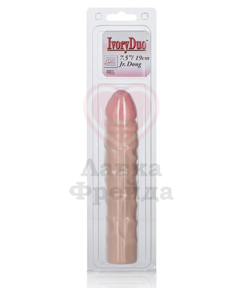 Фаллоимитатор телесного цвета Ivory Duo Jr.Dongs выполнен из упругого поливинилхлорида. Длина – 19 см. Диаметр – 4 см. Детализированный ствол усеян рельефными венками, которые интенсивно стимулируют и пробуждают чувствительность. У игрушки небольшая очерченная головка, которая делает проникновение комфортным. Гибкий материал даёт возможность фаллоимитатору подстраиваться под изгибы вашего тела. С материалом совместимы любые лубриканты. После использования тщательно промойте фаллоимитатор водой с мылом или специальным спреем.