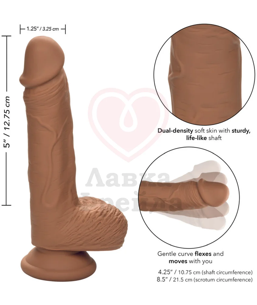 Фаллоимитатор с мошонкой на присоске Dual Density Silicone Studs 13 см коричневый