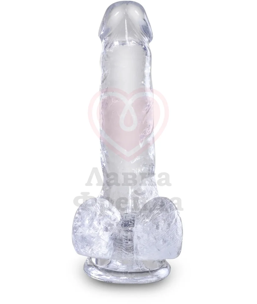 King Cock Clear – это полностью прозрачный реалистичный фаллоимитатор на присоске, впечатляющий на вид и удобный для использования. Эта модель имеет средние комфортные размеры: общие 18 см, длина проникновения 13 см и диаметр в 3,8 см — специально для любителей компактных фаллоимитаторов, а также новичков. Ствол имеет слегка объемные венки, выраженную гладкую головку, а снизу — мошонку для дополнительной реалистичности и стимуляции.