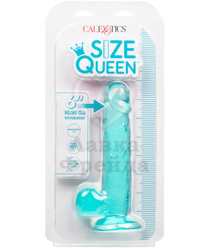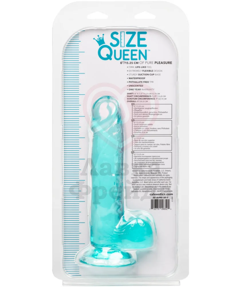 Полупрозрачный фаллоимитатор Size Queen выполнен из гибкого и яркого материала, привлекающего внимание. Игрушка имеет реалистичный дизайн: широкий ствол с выраженной головкой и мошонку у основания. Общая длина игрушки составит 20,3 см, длина проникновения 15,3 см, а максимальный диаметр 3,8 см.