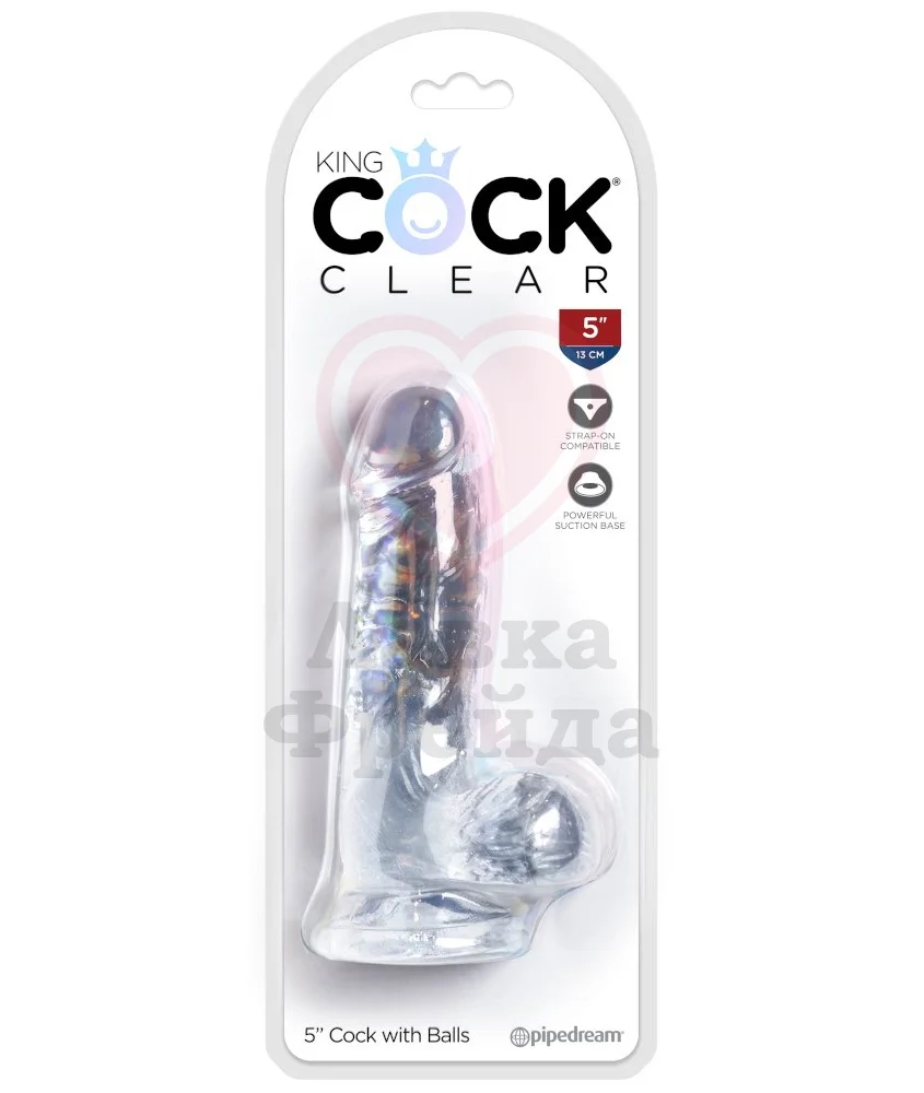 King Cock Clear – это полностью прозрачный реалистичный фаллоимитатор на присоске, впечатляющий на вид и удобный для использования. Эта модель имеет весьма небольшие размеры: общие 15 см, длина проникновения 11 см и диаметр в 3,5 см — специально для любителей компактных фаллоимитаторов, а также новичков. Ствол имеет слегка объемные венки, выраженную гладкую головку, а снизу — мошонку для дополнительной реалистичности и стимуляции.