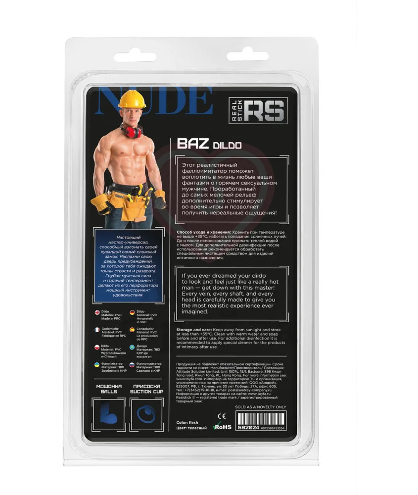 Фаллоимитатор RealStick Nude Baz идеально подходит для использования как соло, так и с партнером. В качестве самостоятельной игрушки или в комплекте практически с трусиками для страпона с креплением колечком. Это обеспечивает мощная присоска на основании игрушки - надежно крепится ко многим плоским поверхностям, освобождая руки, либо сочетается с большинством страпон-системами.