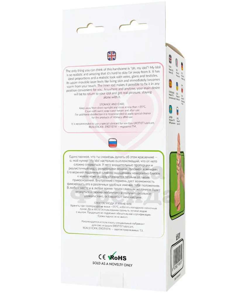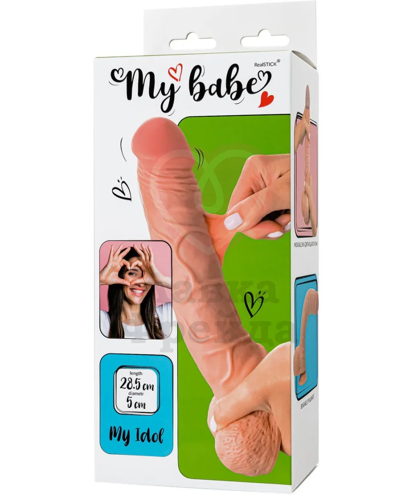 Фаллоимитатор My Babe My Idol имеет подвижный верхний слой, гибкий внутренний стержень, объемную фактурную мошонку, выразительную головку, а также естественный телесный цвет, добавляющий реалистичных ощущений во время игры. Мощная присоска надёжно крепится практически на любую плоскую поверхность, освобождая руки. Также она является ограничителем, который не позволяет игрушке проскользнуть внутрь.