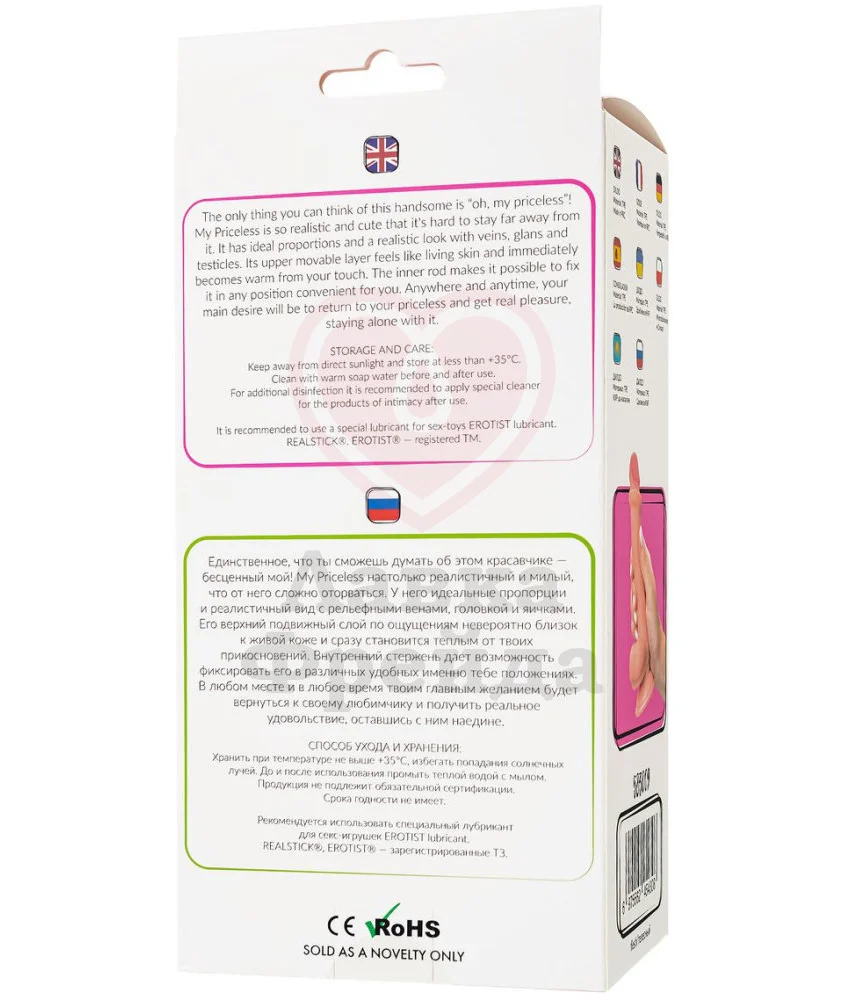 Подвижный верхний слой, гибкий внутренний стержень, выразительная головка, объемная мошонка, а также естественный цвет, добавляют изделию максимум реалистичности. Изготовлено из тактильно приятного материала, который от прикосновений быстро нагреется до температуры вашего тела. Комбинировать с лубрикантами только на водной основе. Очищать тёплым мыльным раствором.