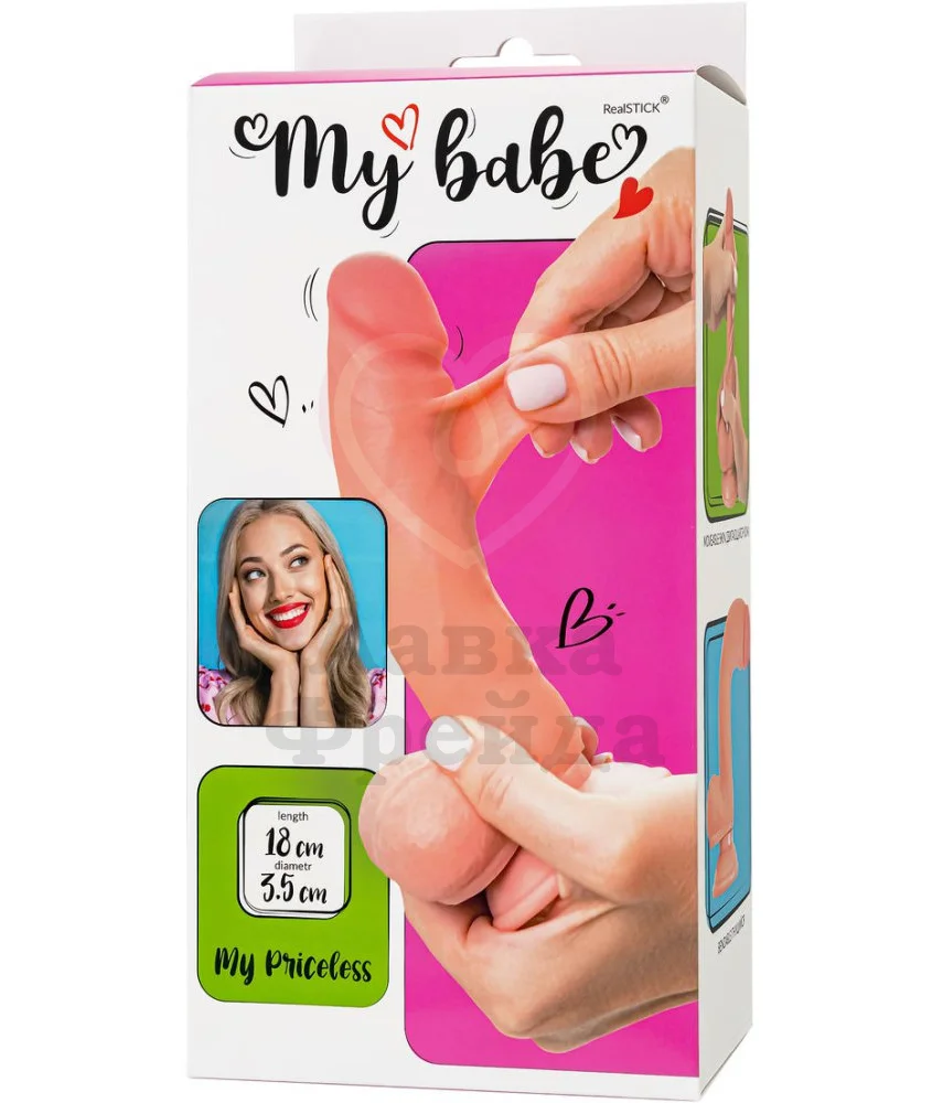 Фаллоимитатор My Babe My Priceless имеет присоску, которую можно закрепить практически на любой гладкой поверхности, освобождая себе руки. Также присоска является надежным ограничителем, который не позволяет игрушке проскользнуть внутрь. Можно использовать в комплекте с поясами для страпонов.