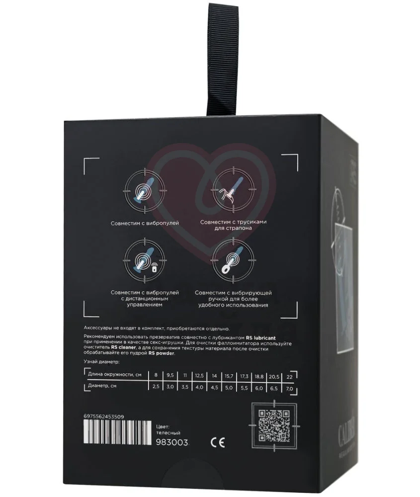 Длина фаллоса - 14 см, диаметр - 5 см. Внутренняя часть дополнена специальным отверстием, закрытым пробкой - вместо неё можно вставить вибропулю (не идет в комплекте и приобретается отдельно) и наслаждаться фаллосом, как вибратором. Мыть водой и мылом, или антибактериальным спреем для игрушек.