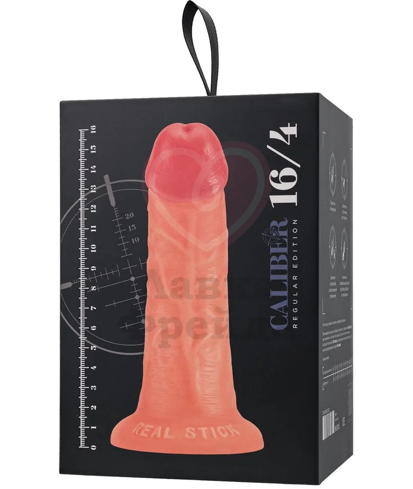 Фаллоимитатор RealStick Caliber изготовлен из медицинского силикона, совместимого со смазками только на водной основе. Нежный материал можно очищать как обычным мыльным раствором, так и специализированными спреями для игрушек. Реалистичная модель имеет выразительную крупную головку и фактурное тело, покрытое сеткой набухших вен.
