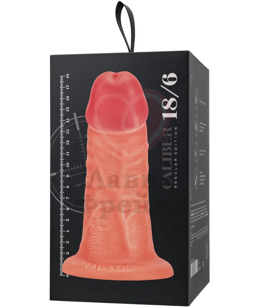 Реалистичный фаллос RealStick Caliber имеет специальное отверстие внутри ствола, закрытое заглушкой, которую можно вынуть и вместо неё вставить вибропулю (не идет в комплекте и приобретается отдельно), чтобы наслаждаться игрушкой, как фаллоимитатором. Длина изделия - 18 см, диаметр - 6 см.