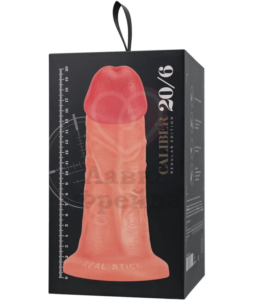 Реалистичный фаллос RealStick Caliber имеет внутри ствола специальное отверстие, закрытое втулкой, которую можно вынуть и вместо неё вставить вибропулю (не идет в комплекте и приобретается отдельно), чтобы наслаждаться игрушкой, как фаллоимитатором. Длина изделия - 20 см, диаметр - 6 см.
