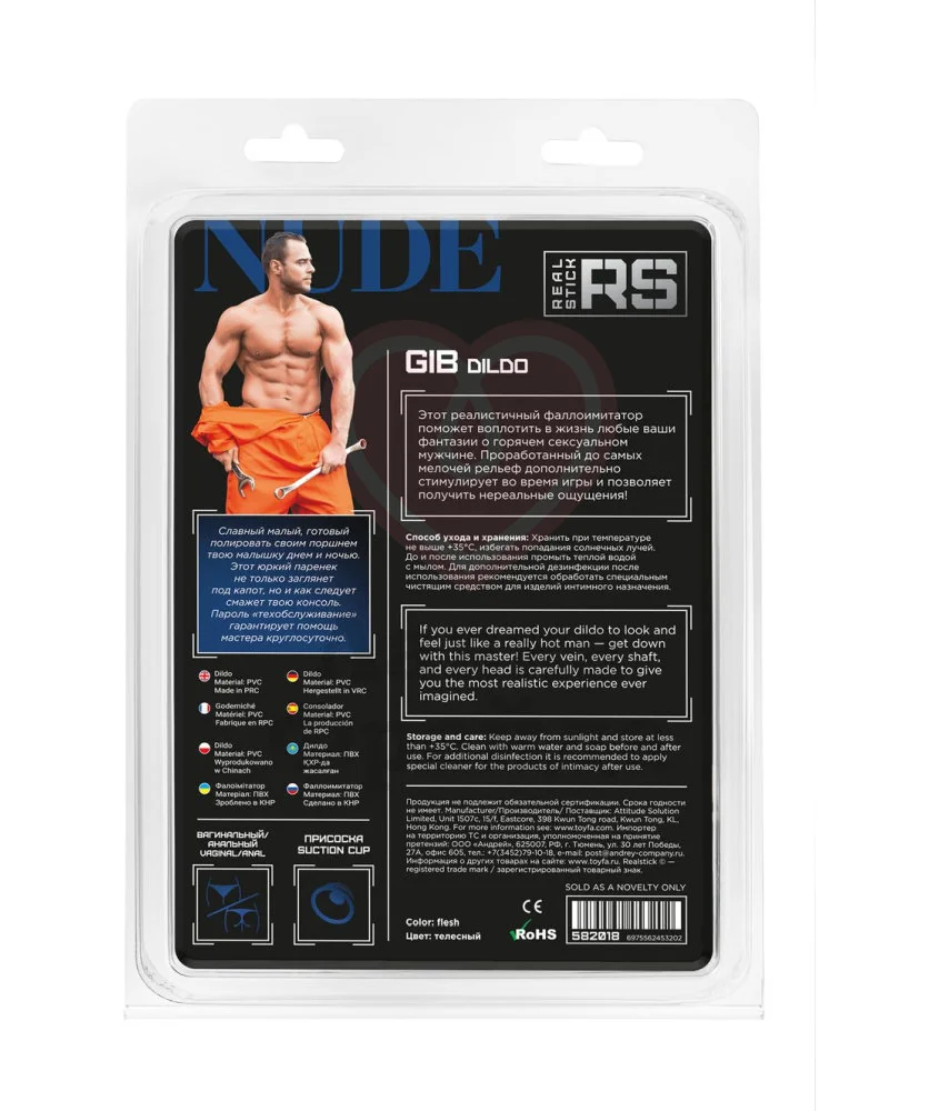 Фаллоимитатор RealStick Nude Gib дополнен мощной круглой присоской на основании, которая не только надежно крепится практически к любой плоской поверхности, но и отлично сочетается с трусиками для страпона с креплением колечком. Игрушка без мошонки, имеет ярко выраженную головку, а также фактурные морщинки и венозную сетку по всей длине ствола.