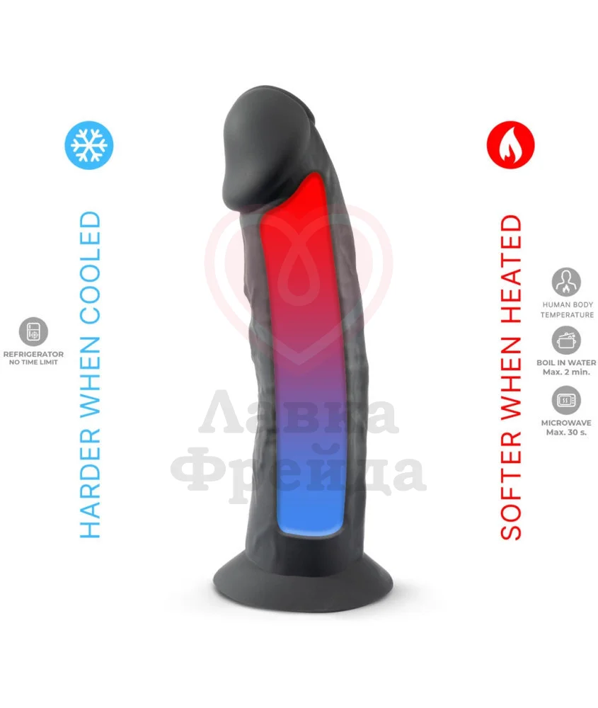Фаллоимитатор Silexd Model 2 сделан из бархатистого чёрного силикона с наполнением Silexpan двойной плотности, восприимчивого к температуре - при нагреве приобретает мягкость и становится твёрже по мере охлаждения. Чтобы остудить, положите игрушку в холодильник на любое время, а чтобы нагреть, достаточно 30 секунд в микроволновке или 2-х минут в кипятке.