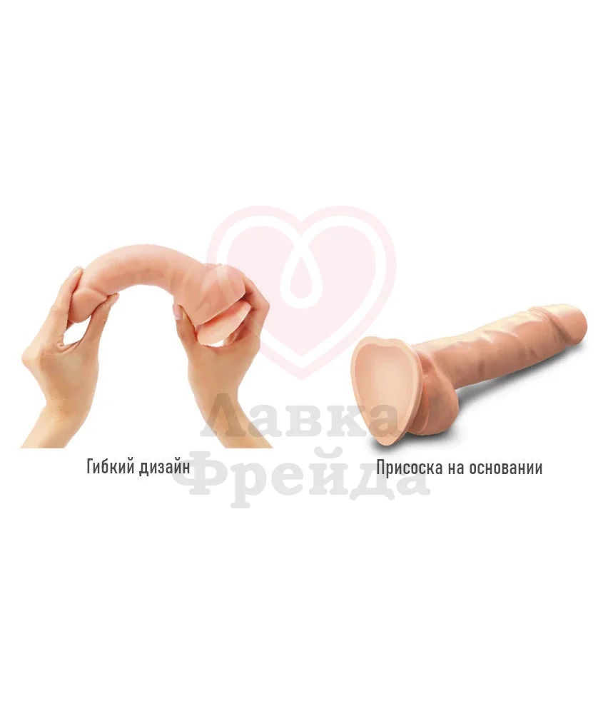 На основании игрушки расположена присоска — её удобно закреплять на плоских поверхностях или трусиках для страпона с колечком. Совмещайте фаллоимитатор с лубрикантами на водной основе для плавного скольжения, а очищайте после использования с водой, мягким мылом и специальными средствами для наилучшего результата.