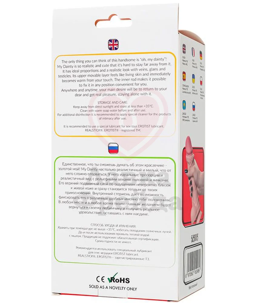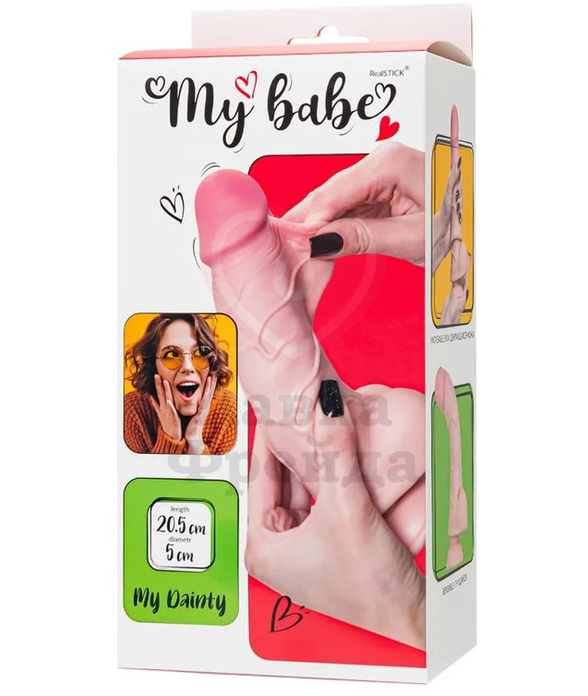 Фаллоимитатор My Babe My Dainty сделан материала, близкого по текстуре к настоящей коже - нежный, тактильно приятный, быстро нагревается от прикосновений, создавая иллюзию реалистичного проникновения. Реалистично набухшие вены, упругую мошонку и головку, скрывающуюся в складках движущейся кожи, оценят любители естественных ощущений.