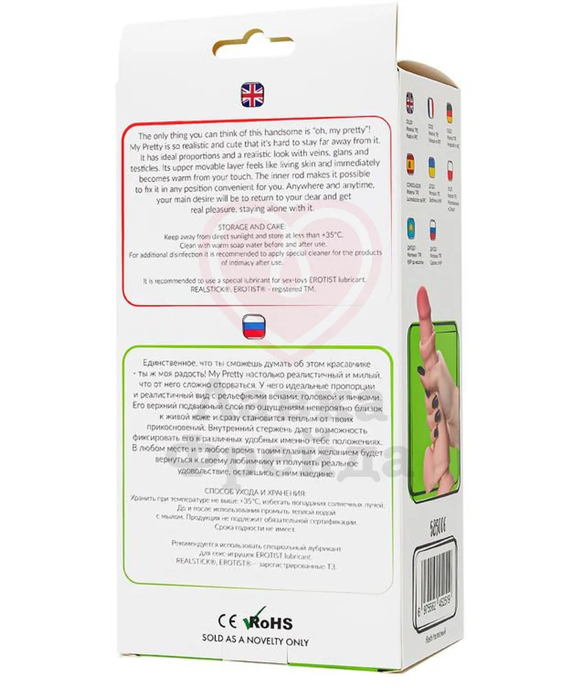 Фаллоимитатор My Babe My Pretty сделан материала, близкого по текстуре к настоящей коже - нежный, тактильно приятный, быстро нагревается от прикосновений, создавая иллюзию реалистичного проникновения. Реалистично набухшие вены, упругую мошонку и головку, скрывающуюся в складках движущейся кожи, оценят любители естественных ощущений.