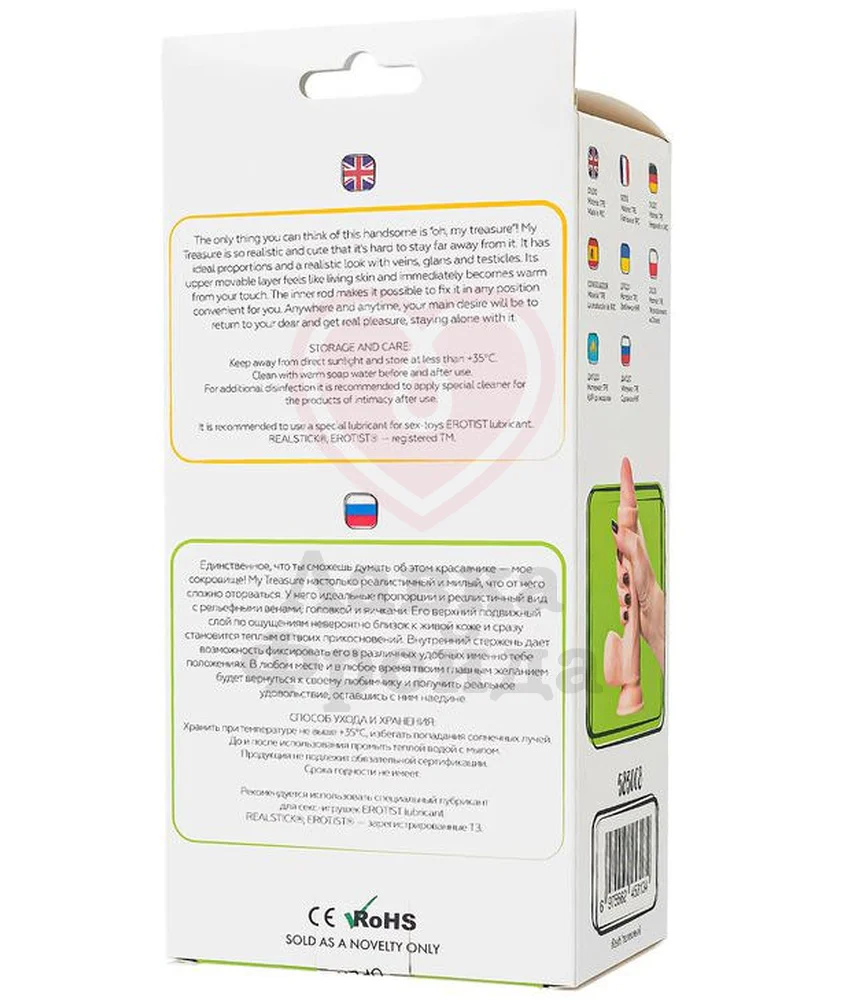 Фаллоимитатор My Babe My Treasure сделан материала, близкого по текстуре к настоящей коже - нежный, тактильно приятный, быстро нагревается от прикосновений, создавая иллюзию реалистичного проникновения. Реалистично набухшие вены, упругую мошонку и головку, скрывающуюся в складках движущейся кожи, оценят любители естественных ощущений.