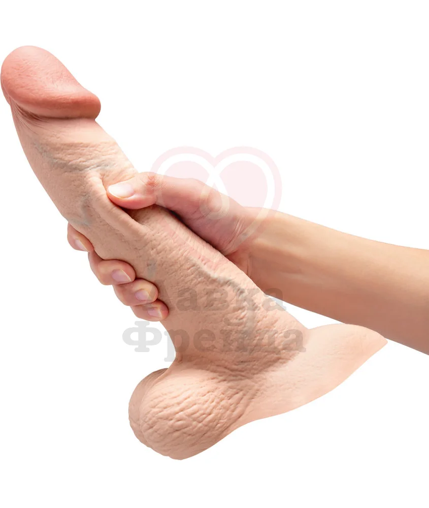 Особый изгиб предназначен для целенаправленной стимуляции самых чувствительных внутренних эрогенных зон. Фактурная мошонка, выразительный ствол и чётко очерченная головка дополнительно усиливают реалистичные ощущения от проникновения. Нежный силикон совместим со смазками только на водной основе. В комплекте удобный мешочек для хранения игрушки. Очищать слабым мыльным раствором или тойклинером.