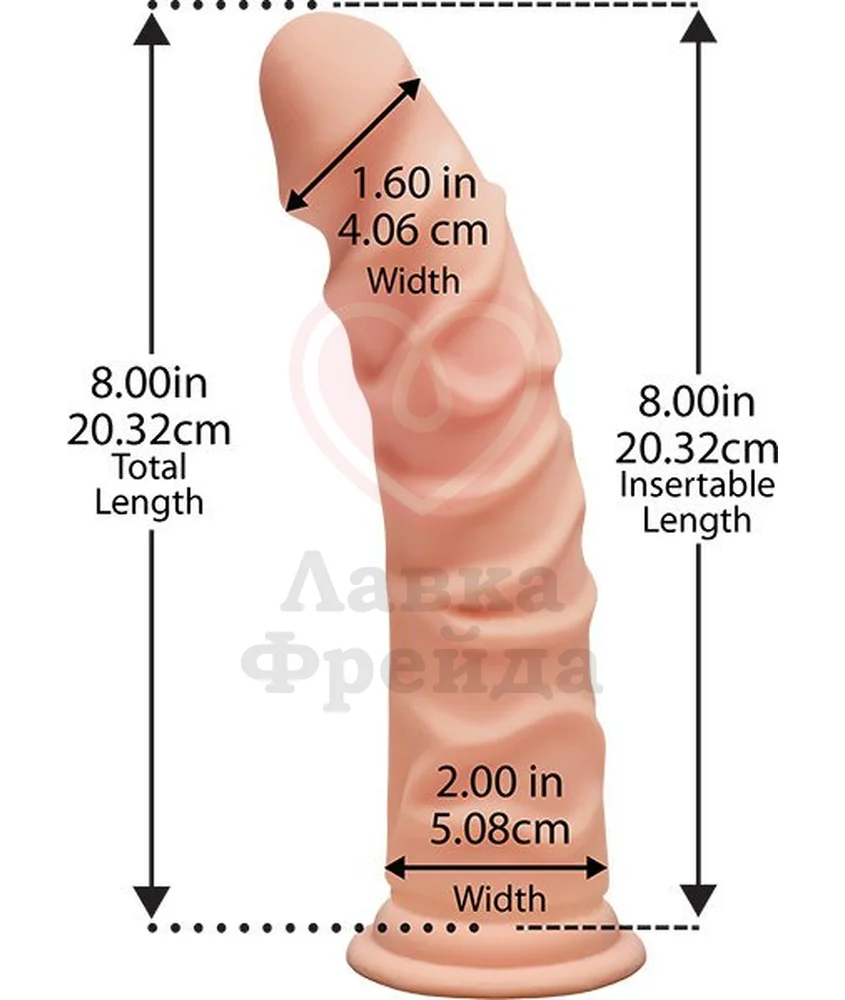 Форма игрушки реалистичная — упругий чуть изогнутый ствол покрыт рельефными венками для максимальных ощущений. Общая длина 21 см, максимальный диаметр у основания 5 см, а минимальный 4 см. Фаллоимитаторы из Ultraskyn лучше всего совмещать с лубрикантом на водной основе — так использование будет особенно плавным и приятным. После использования очищайте его водой, мылом и средством для игрушек.