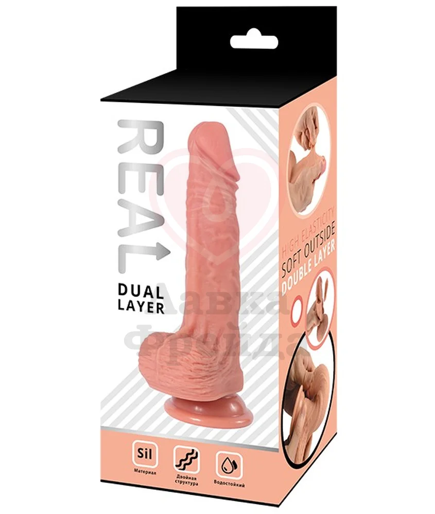 Серия Real Dual Layer имеет особое строение реалистичных игрушек. Внутри фаллоимитатора довольно плотная текстура, которая сохраняет приятную гибкость. Сверху же дополнительный слой нежного материала создаёт ощущения близкие прикосновениям к реальной кожи. Фаллоимитатор Real выглядит максимально натурально, имеет анатомическую форму и множество мелких деталей, приближающих игрушку к оригиналу.
