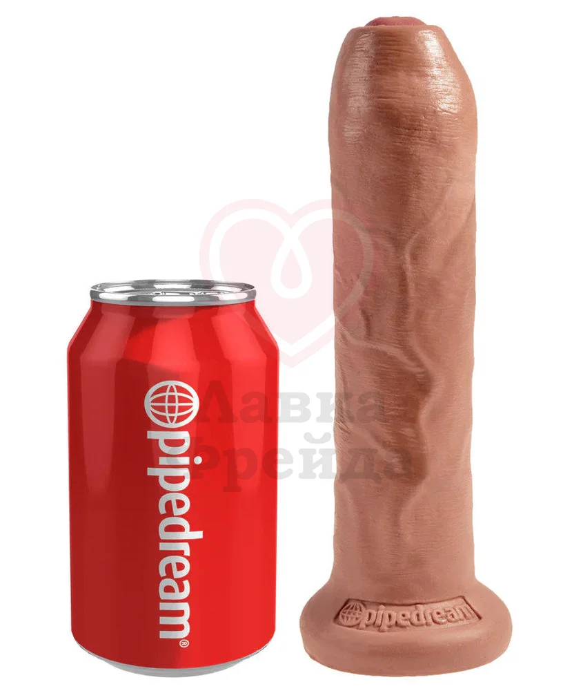 Фаллоимитатор King Cock Uncut — реалистичная игрушка с особым дизайном, напоминающим необрезанный член. Внешняя подвижная часть материала, имитирует крайнюю плоть, скрывая или открывая головку, а также передавая правдоподобные ощущения от прикосновения и использования. Эта модель имеет общую длину в 20 см, длину проникновения — 18 см, а максимальный диаметр — 4,5 см.