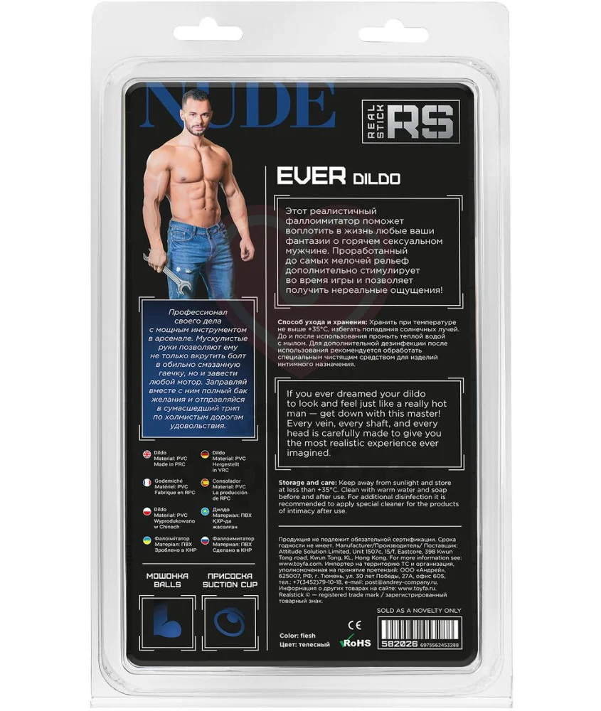 Крупный реалистичный фаллоимитатор RealStick Nude Ever дополнен массивной мошонкой, стимулирующей промежность во время игры, фактурным стволом с венами и складочками, а также выразительной яркой головкой. Изделие выполнено из высококачественного ПВХ - устойчивый к износу материал, который можно использовать в комбинации с лубрикантами на водной и силиконовой основе. Мощная присоска в основании игрушки подходит к трусикам для страпона с креплением колечком. Также с её помощью можно установить фаллос практически на мебели, освобождая себе руки. Очищать водой и мылом или специализированным спреем для игрушек.